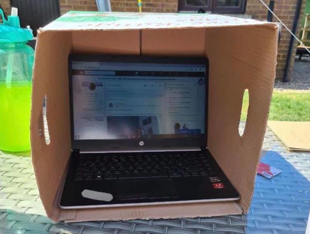 You could invest in a laptop sunshade, a nifty little gadget starting from about £30, that is basically like a beach tent but for shielding your computer. Or try the latest in ‘working from home technology’ – the cardboard box. A simple but genius hack shared during the early lockdown days of 2020.